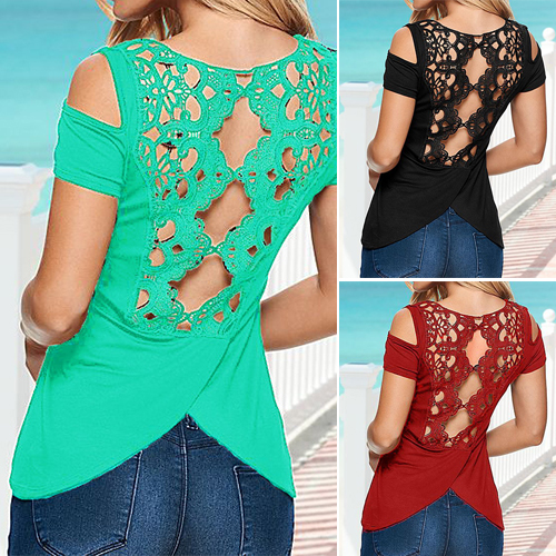 Pretty lace spliced and hollow out design would show your sexy back and figure. Cold shoulder