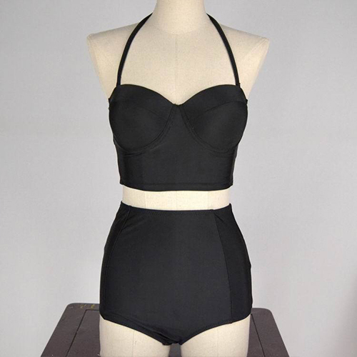 Solid color style,including a halter bra and a high waist briefs,this bikini set is perfect for your beach days.