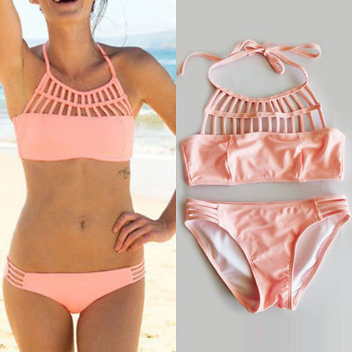 Show off your sexy and sweet flavor via this swimwear. Including hollow out, solid color and halter design, your charming curve would