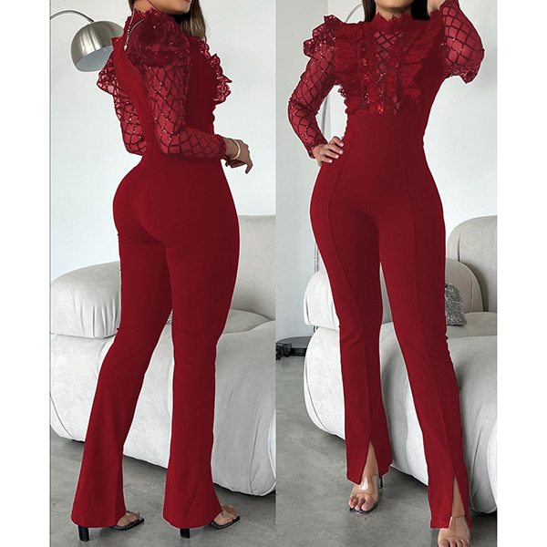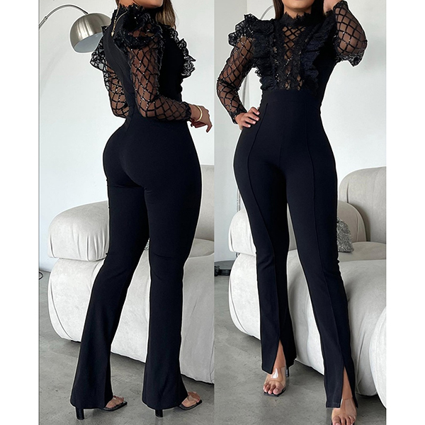 Konstruerad med toppmodern hotfix-strasssteknik framhäver denna jumpsuit tydligt din rena