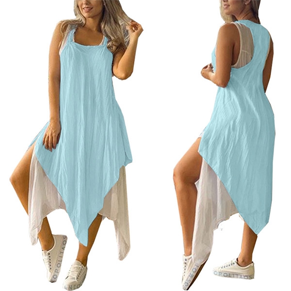 it is finished with sleeveless and irregular hem design,this two-piece set can ensure you a comfortable