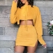 Comes with a solid color,including a long sleeve hooded crop top and a slit hem skirt,this two-piece set of