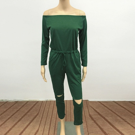 this jumpsuit. Off shoulder design can deliver your sheer femininity. Designed with long sleeve,