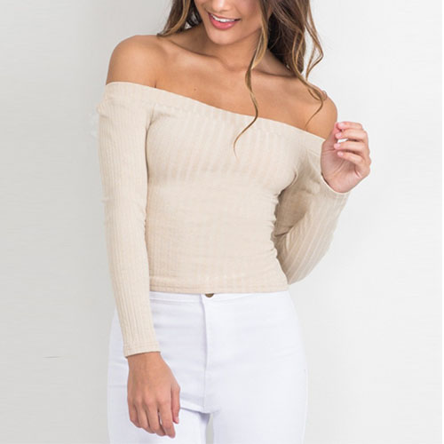 Go ahead to enjoy your autumn season with this knit crop tops. It boasts off shoulder, long sleeve