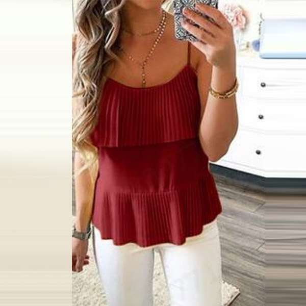 In these hot summer days,this sling top is one of your best choices.It is finished with pleated