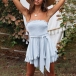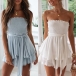 Sexy Solid Color Ruffeld Trim Off-the-shoulder Double Layer Hem Self-tie Romper