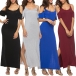 Designed for a long-length fit, featuring a round neckline, open shoulder, cami strap, short sleeves,