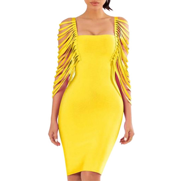 finished with square collar and a fit silhouette,this dress can easily showcase your seductive curve.
