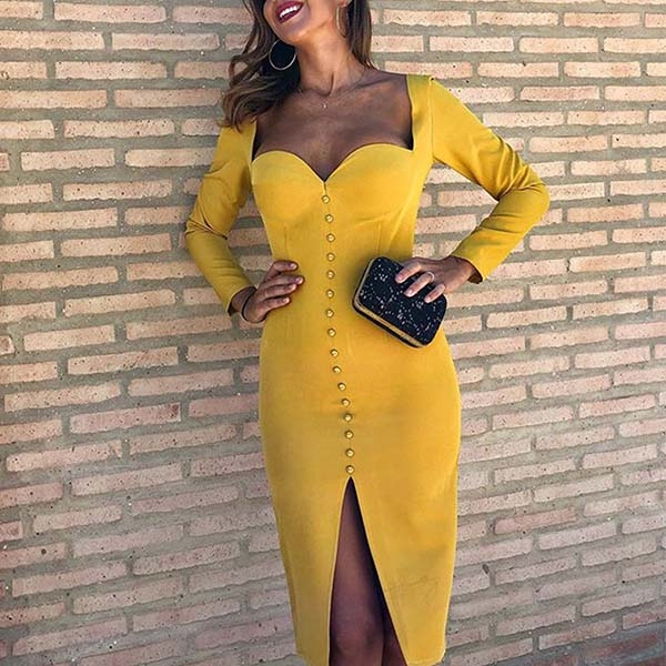 on this piece. Solid color style,the square collar and slit hem design will make this piece look more flirty