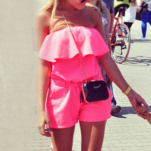 is the perfect choice. Strapless style,with flouncing design,sexy and charming. And its gathered waist