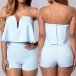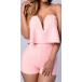 Strapless style,with a v-neckline and flouncing design,sexy and charming. Paired with a