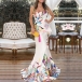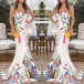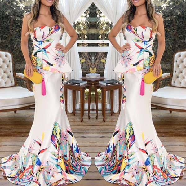 Sexy Strapless High Waist Fishtail Hem Printed Party Dress