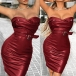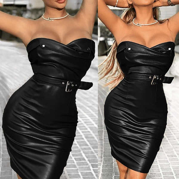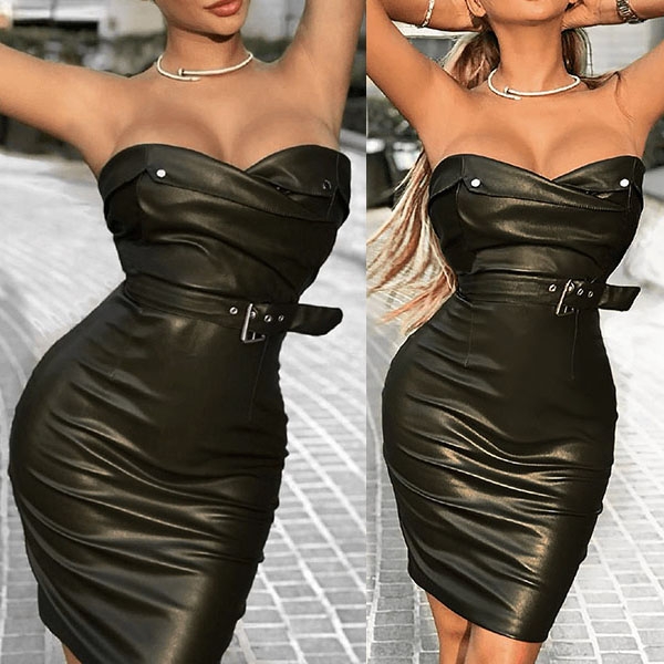 For some special occasions like nightclubs or cocktail parties,you can slip into this PU leather dress to gain