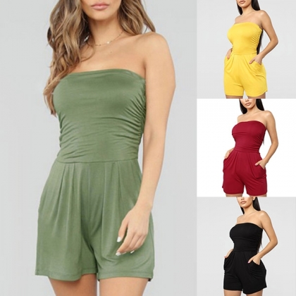 When you slip into this romper,seductive appeal can come easily. Strapless style,with high waist and