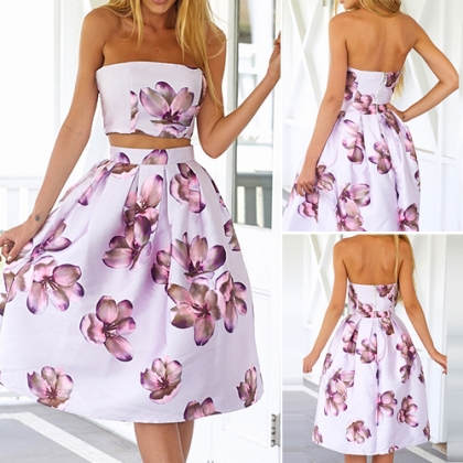 Designed with vibrant floral print,its strapless and hollow out high waist design makes it more