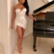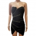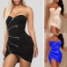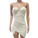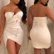 Axelbandslös modell, med en figurnära silhuett och en oregelbunden fåll, kan den här klänningen enkelt skissa upp