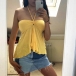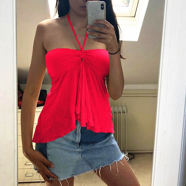 You can easily expose your charming skin as well as your flirty side through this top. Halter style,