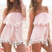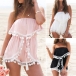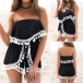 this romper is the perfect choice. Strapless style,with lace spliced design makes it more feminine.