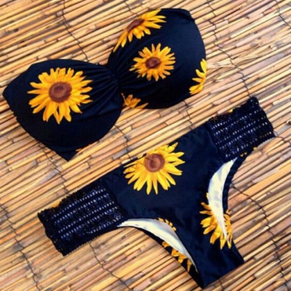 Its sunflower printed patter design makes this bikini set look so eye-catching. Including