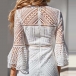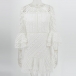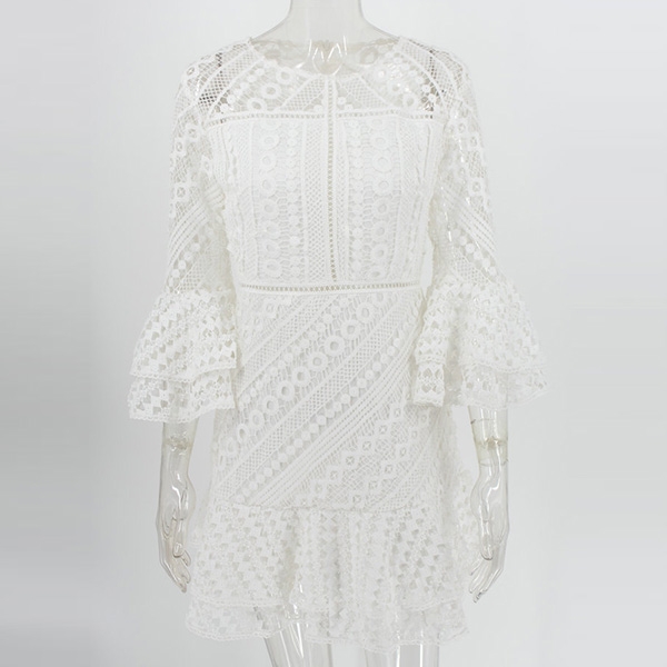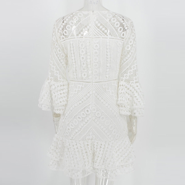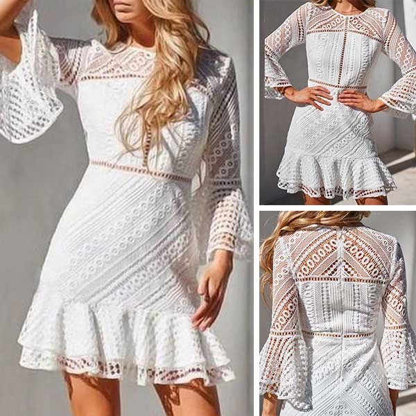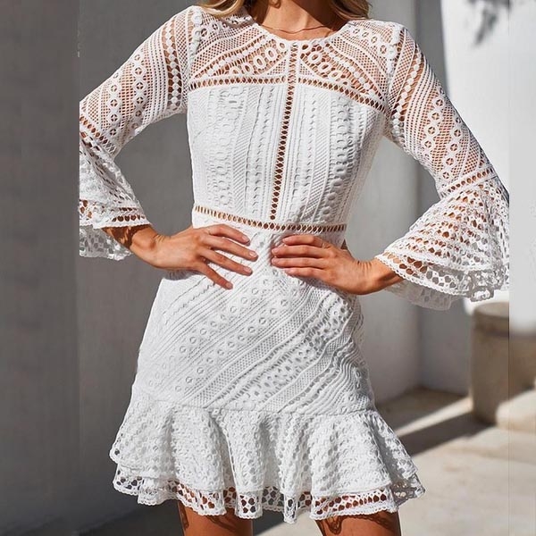 Its alluring design details like trumpet sleeve,ruffle hem and hollow out lace details make this piece
