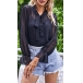 Sexy Trumpet Sleeve Ruffle Stand Collar See-through Blouze