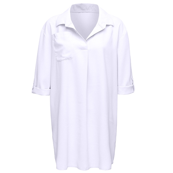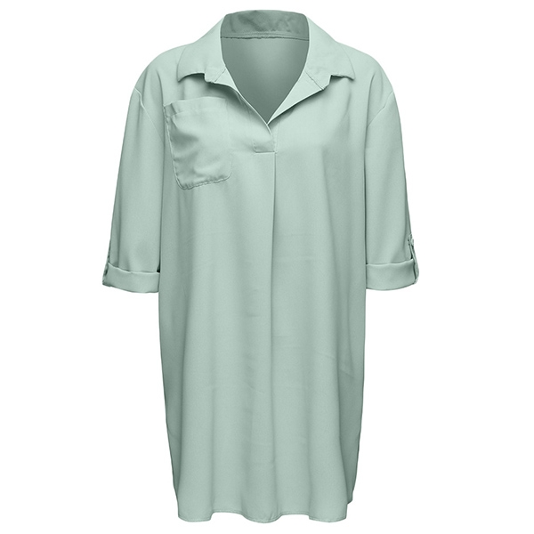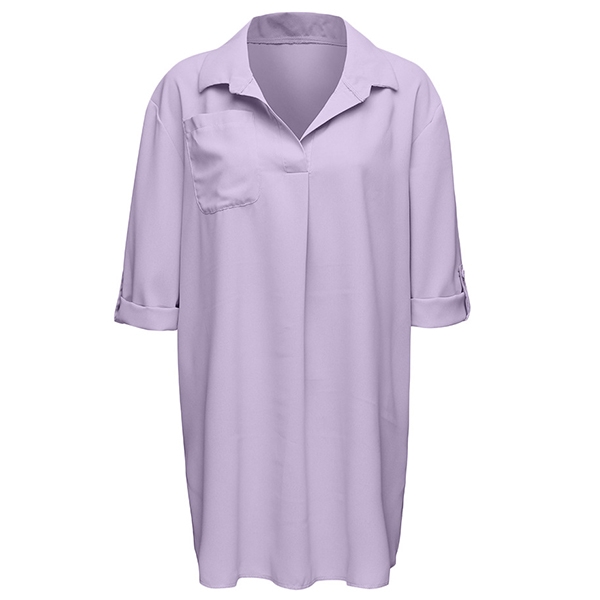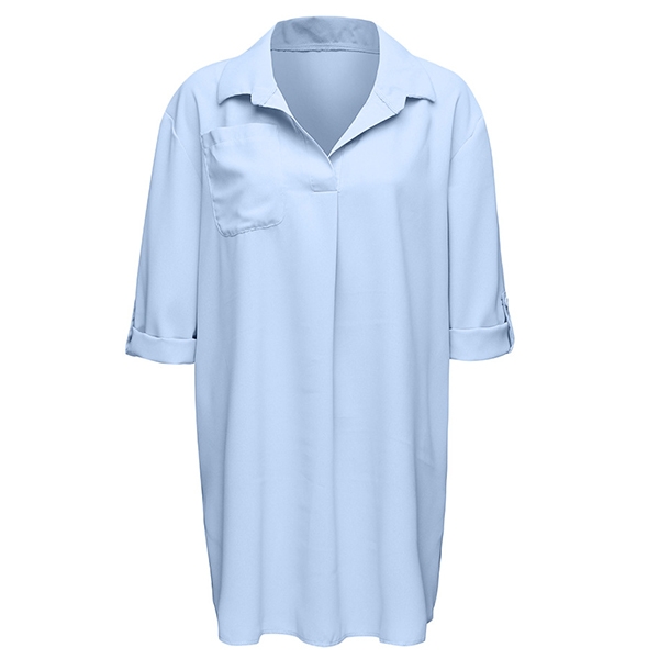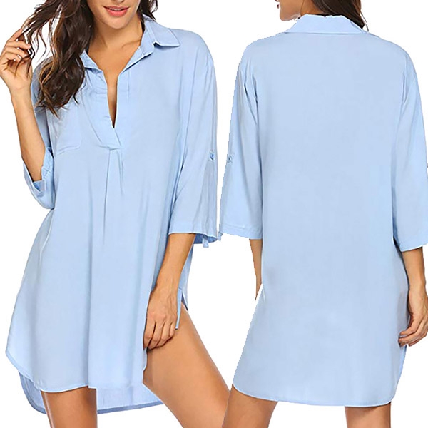 For your beach days,we suggest you taking this blouse with you. Solid color style,finished with 3/4 sleeve,