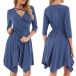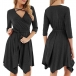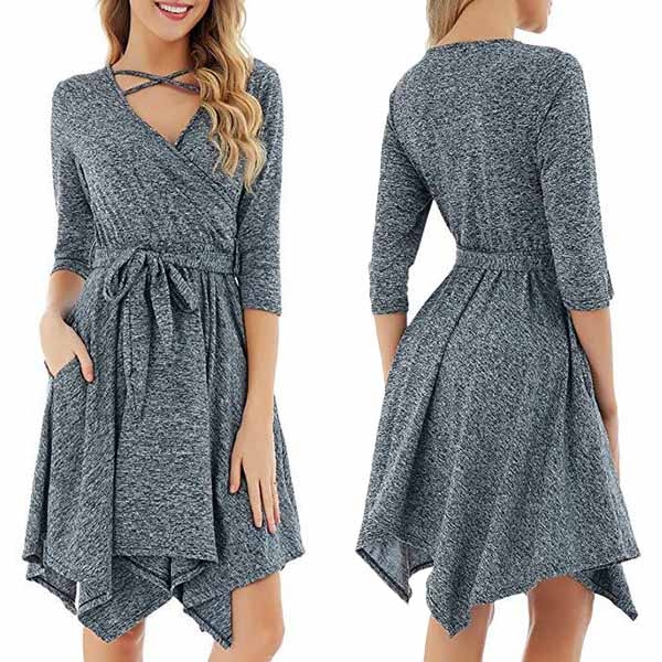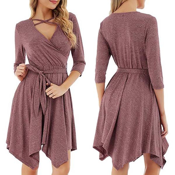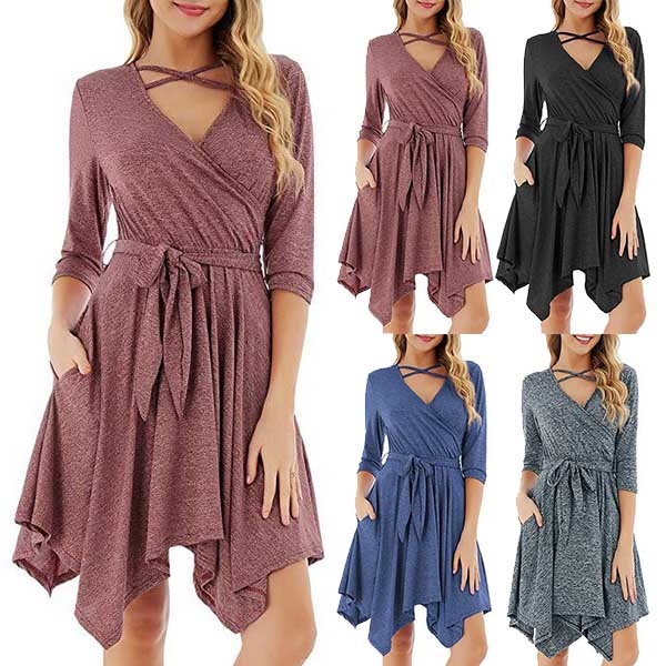Comes with a solid color,finished with 3/4 sleeve,v-neck and an irregular hem,this dress also can exude