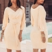 It is finished with solid color,v-neck,3/4 sleeve and a fit silhouette,which can exude your charming feminine