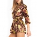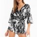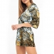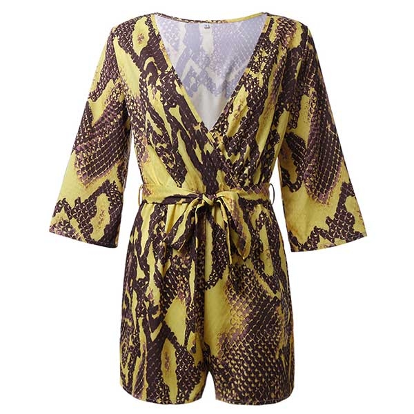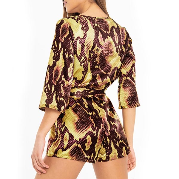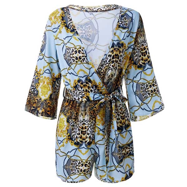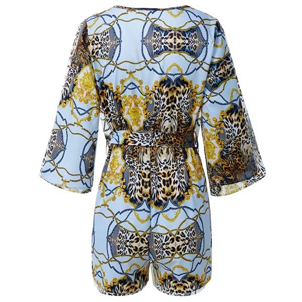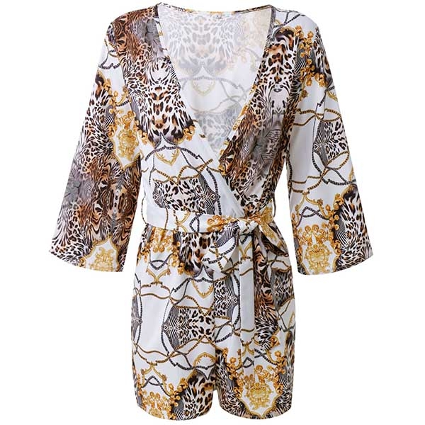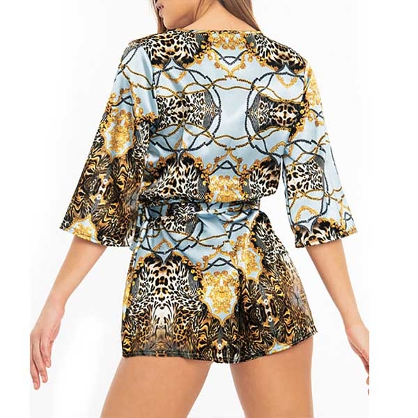 It features chic and eye-catching printed details,with half sleeve and v-neck design,this piece also