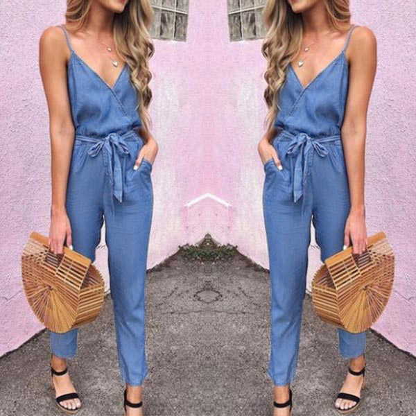 This jumpsuit is designed for to enhance your appeal.The sling style and v-neck design make