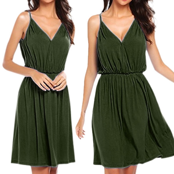 Green these sun-soaked summer days with this relaxed dress. Solid color tone design makes it look