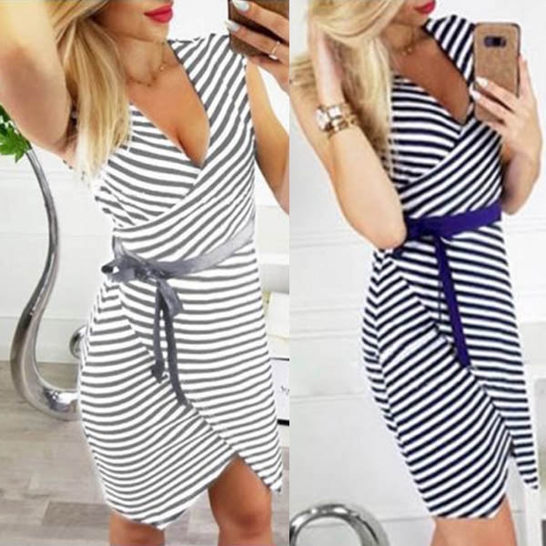 figure-flattering silhouette, feature allover stripe pattern print for classic appeal, detailed with an alluring
