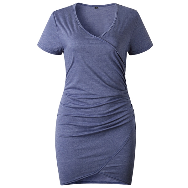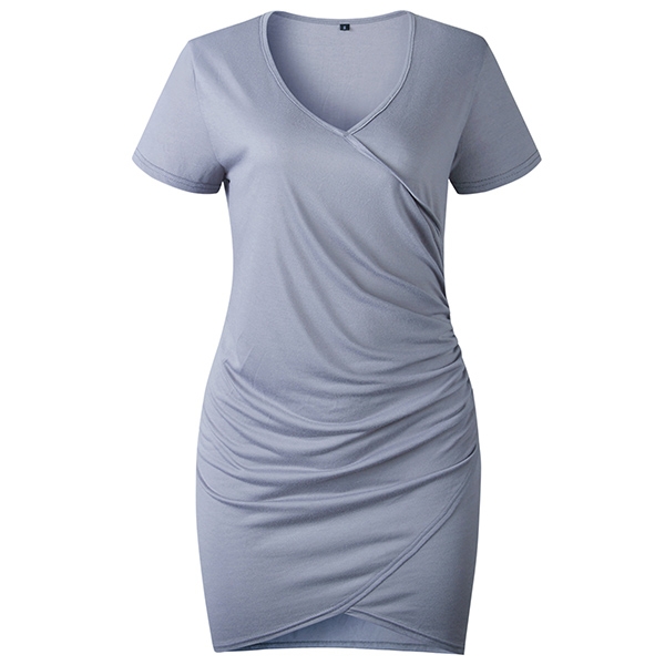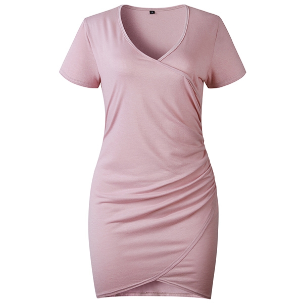 with this short sleeve dress! It comes with a solid color,the v-neck and irregular hem design can offer