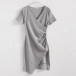 Catch the envious eye of everyone in the room with this short sleeve dress. Solid color style,the v-neck