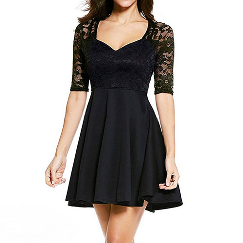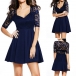 Exude a feminine look when you slip into this dress. See-through lace spliced style,designed with half sleeve,v-neckline and a high waistline,this