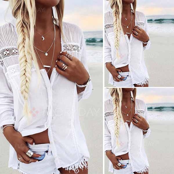 Comes with a classic yet stylish white tone,the v-neck and lace spliced design,