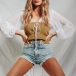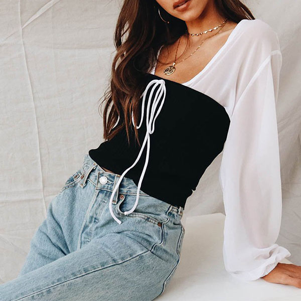 This two-piece set is a cool way to help you win more eyes. Including a long sleeve v-neck chiffon top and