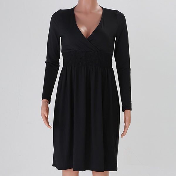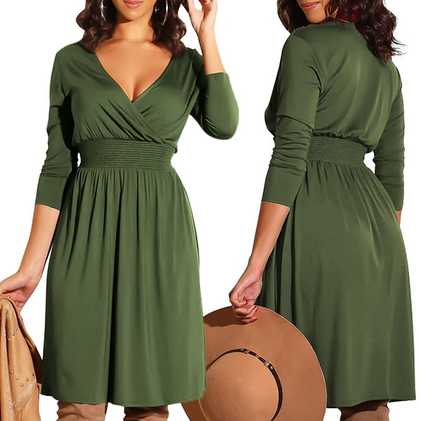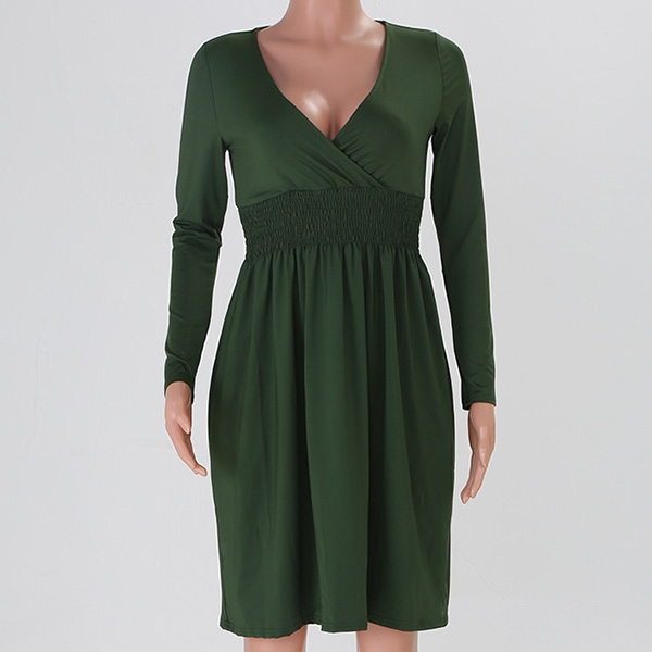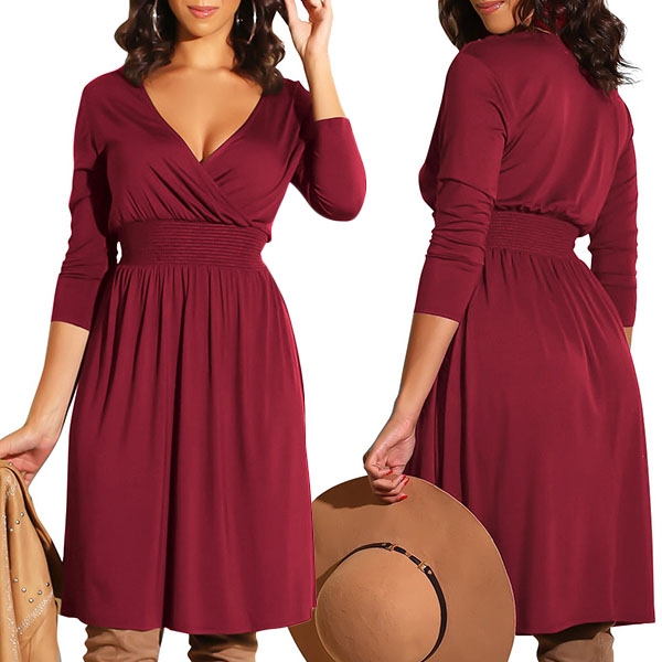 Coming with a solid color,finished with long sleeve,v-neck and high waist design,this dress knows how to express