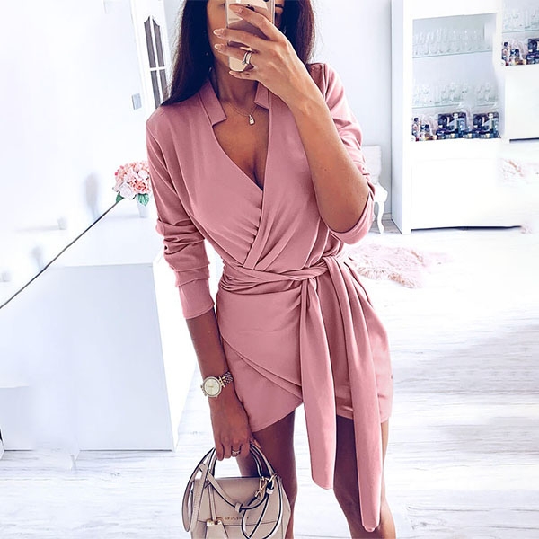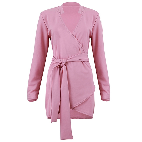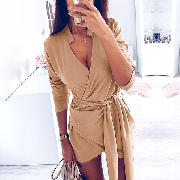 It comes with a solid color,the deep v-neck,irregular hem and lace-up design at the waist part will