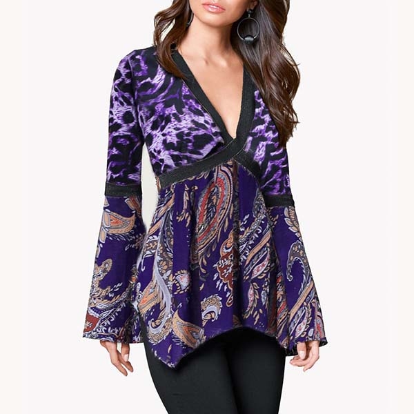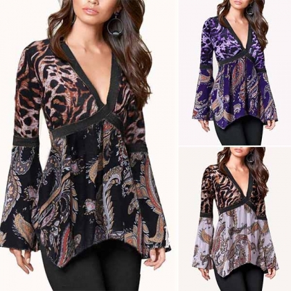 It can offer you an eye-catching look thanks it the chic printed details. Moreover,the v-neck and irregular