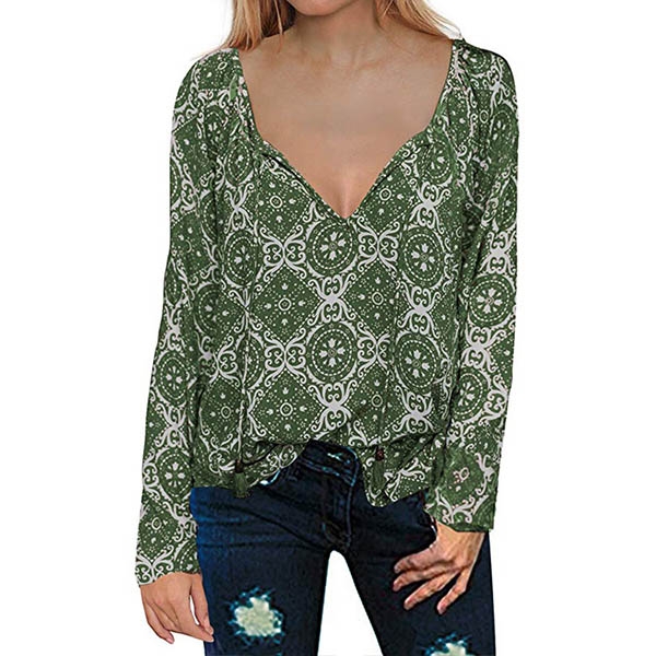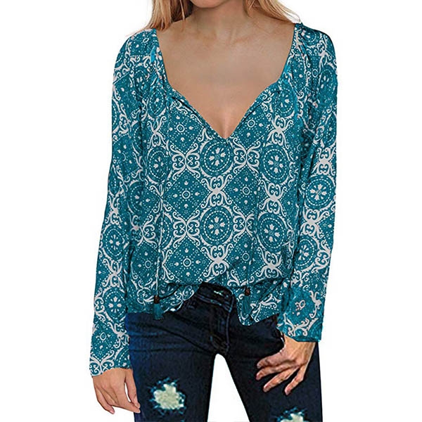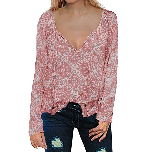 This blouse is designed with chic and eye-catching printed pattern,which can enrich your overall look.
