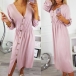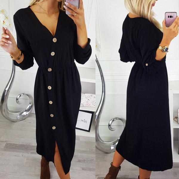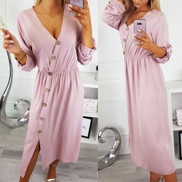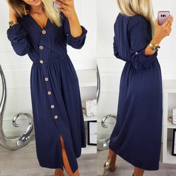 You can easily exude your charming feminine appeal through this dress. It features a solid color,the v-neck,