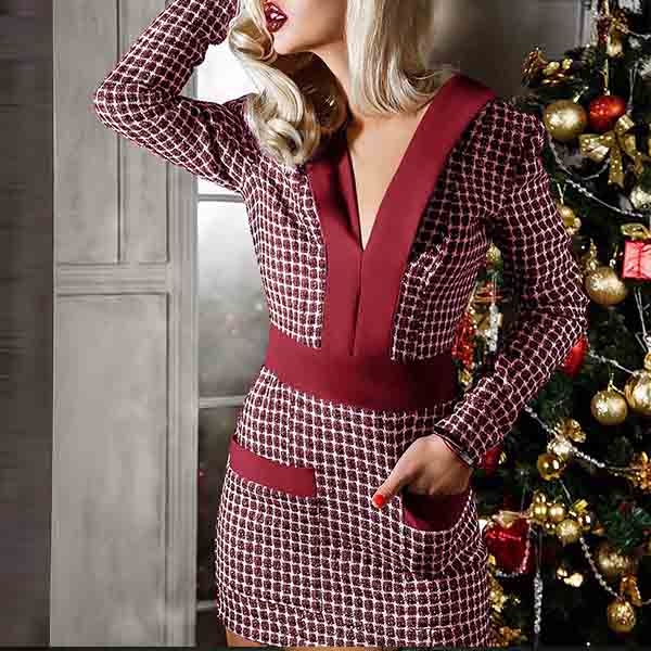Designed with stylish and popular plaid element,the v-neck design will lend you a sexier look,and the fit