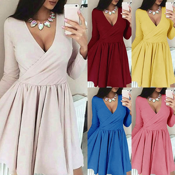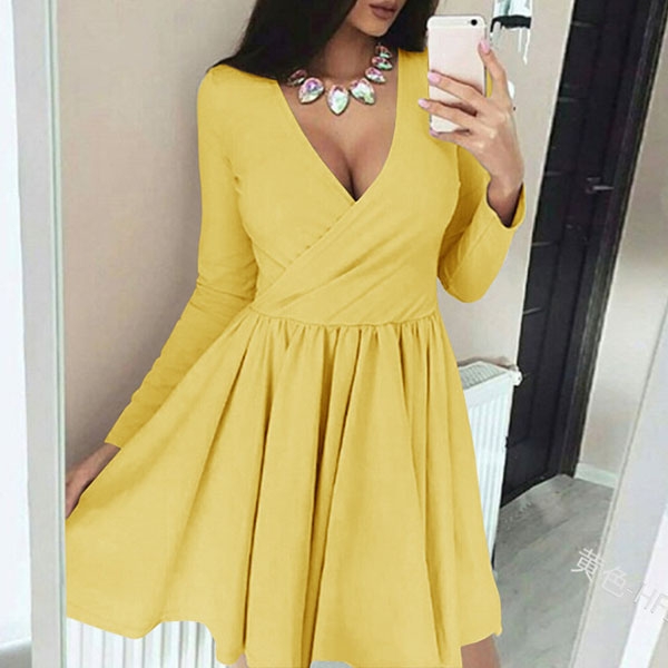 Are you attracted by this sexy dress? Comes with a solid color,it is finished with v-neck and long