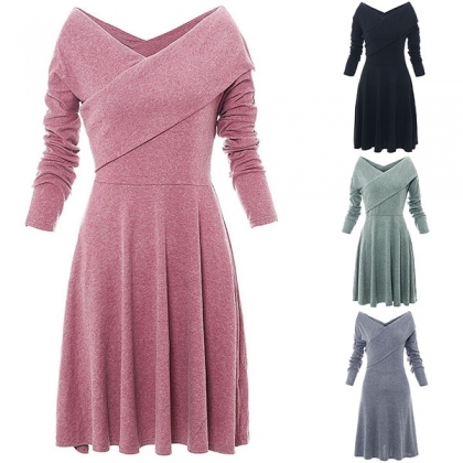 When in doubt what to wear for these cold days,you can make your eyes focused on this long sleeve dress. Solid color tone design makes it look simple