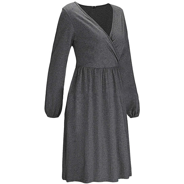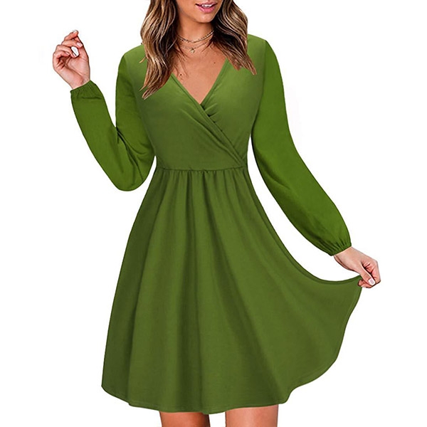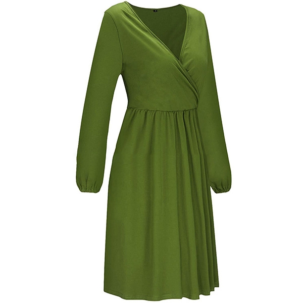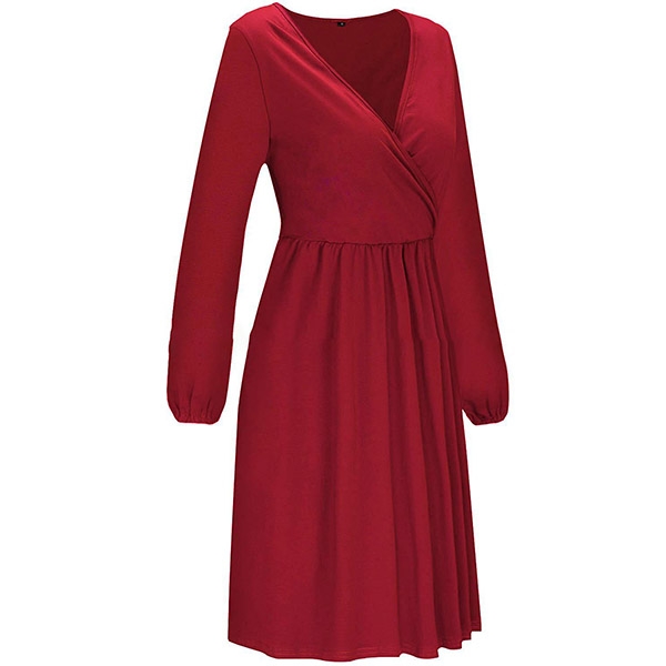 finished with long sleeve,v-neck and high waist design,this dress can give you a perfect transition