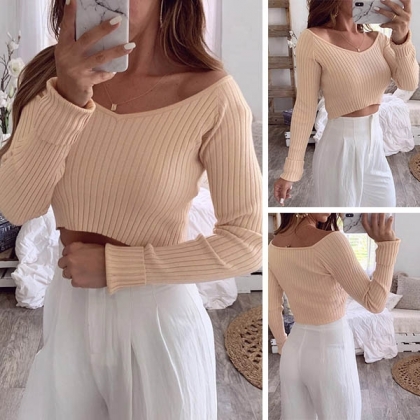 Wanna show off your slender waist? Then have a try this knit crop top! It boasts a solid color,