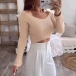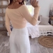 cozy knitted fabric. Try to match with your high waist bottoms to finish a charming daily look!