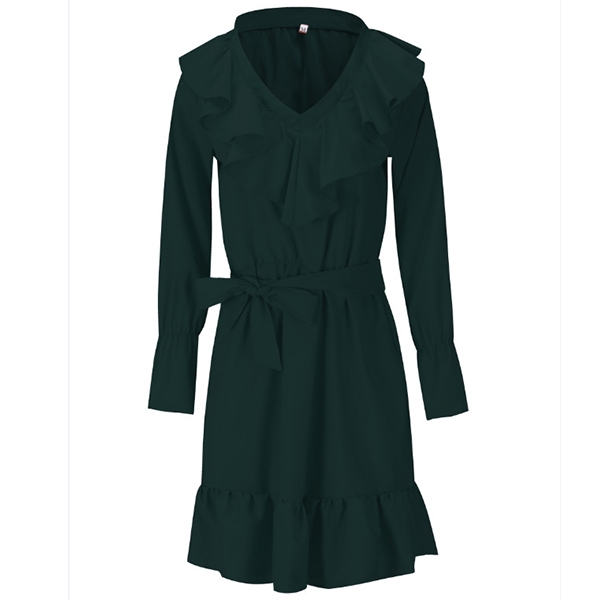 For a sweet and charming dating look,you can count on this dress. It comes with a solid color,the v-neck
