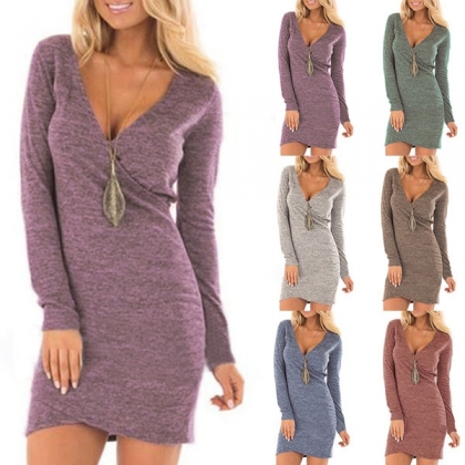 v-neck and a fit silhouette,this dress not only can give you a comfortable day,but also can showcase